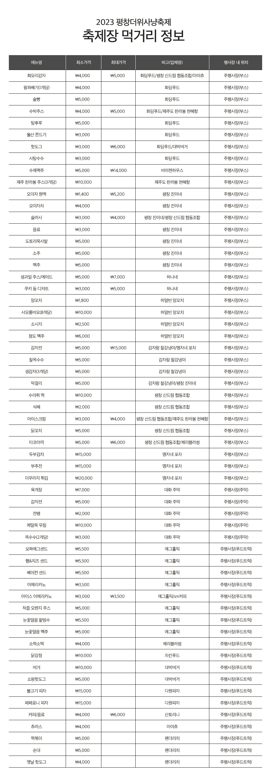 장소 : 강원특별자치도 평창군 해뜰마을길 49-7 더위사냥축제장