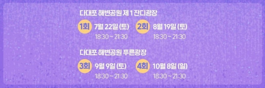 기간 : 7/22(토), 8/19(토), 9/9(토), 10/8(일)