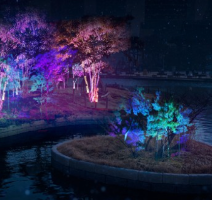 형형색색의 레이저와 라이팅 조명을 이용하여 화려해진 빛의 숲에서 산책을 즐겨보세요! |