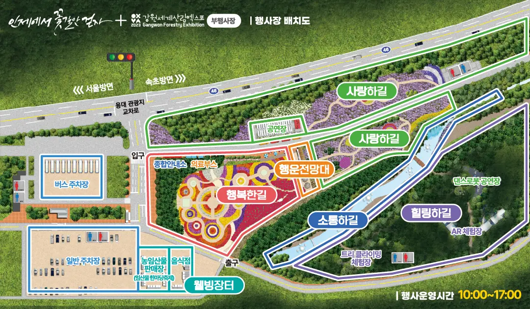 강원 세계산림엑스포 홍보관 음식점 농임산물 판매장 임산물 한마당 축제 농촌체험마을 체험프로그램 |