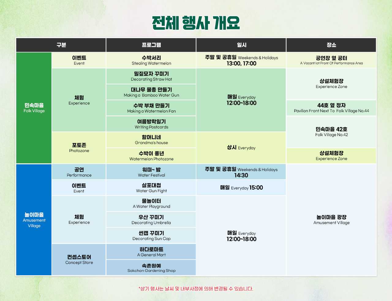 - 장소 : 할머니네(민속마을 42호), 수박이 풍년(상설체험장)