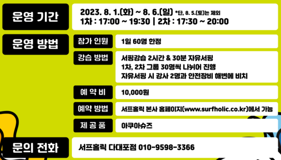 일정 : 2023. 8. 1(화) ~ 8. 6(일) / 6일동안
