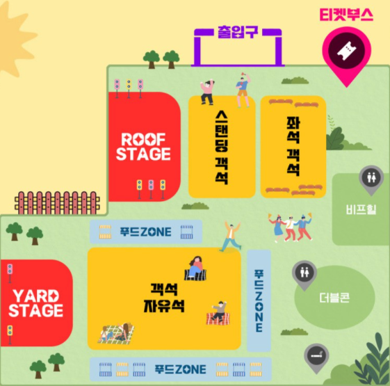 스탠딩, 좌석, 돗자리석 자유롭게 이용 가능합니다.