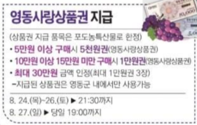 구매하시고 영동사랑상품권으로 할인도 받고 일석이조!!